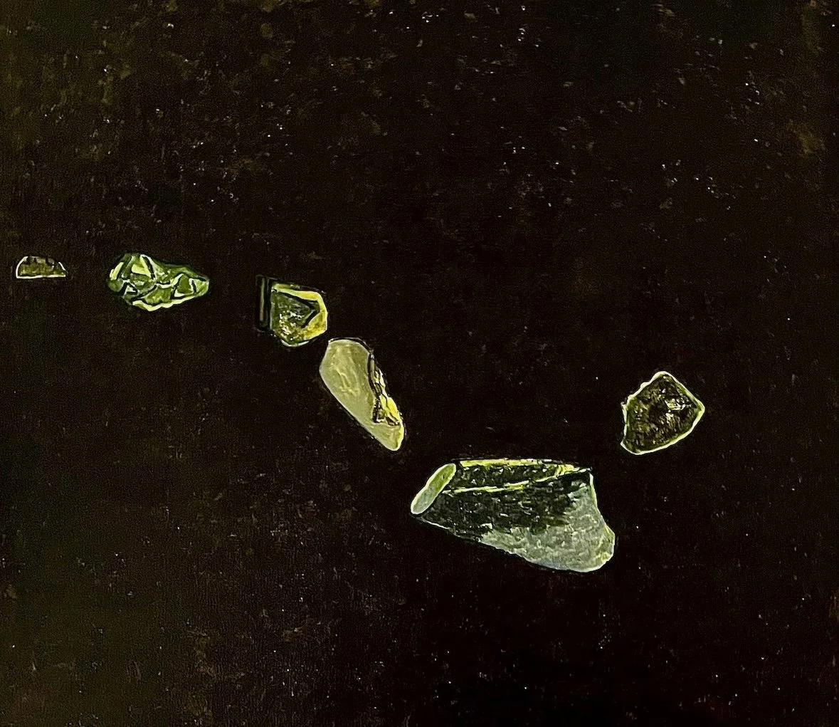 Molecular Visitation, 8x8x7/8” sea and beach glass, beach stones on unpainted panel 2026